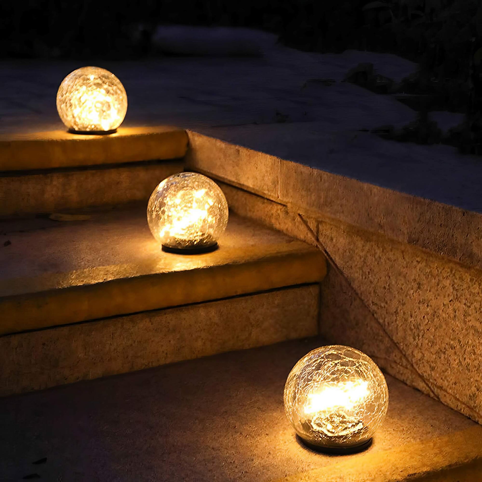 Introducing the Starlit Shining Orb, a captivating solar-powered glass ball. Its cracked glass design and golden lights create a delightful, warm glow that enhances any space.
